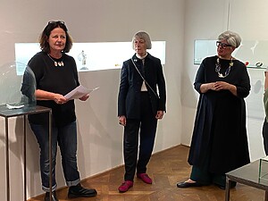 Durch unterschiedliche Konzepte, in Vitrinen, auf Podesten, freistehend oder hängend, kann hier Schmuck in Verbindung mit anderen Medien optimal präsentiert werden. Diese können sich so gegenseitig absetzen oder zu einer Einheit verschmelzen.